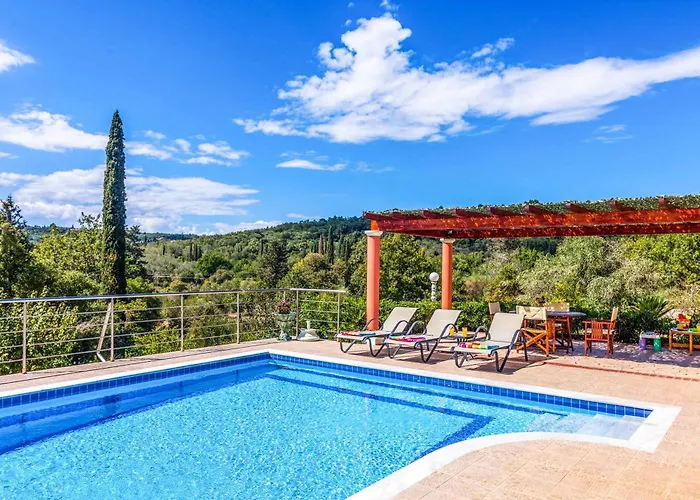 Villa Mirela Mikri dysponuje tarasem z widokiem na ogród, 17 min jazdy od lotniska Korfu.
